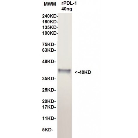 Western blot: Western Blot: Anti-PD-L1 clone 15F2 detected 40ng recombinant PDL-1 on Western Blot. The blot was stained with HRP substrate 4-Chloro-1-Naphthol.
